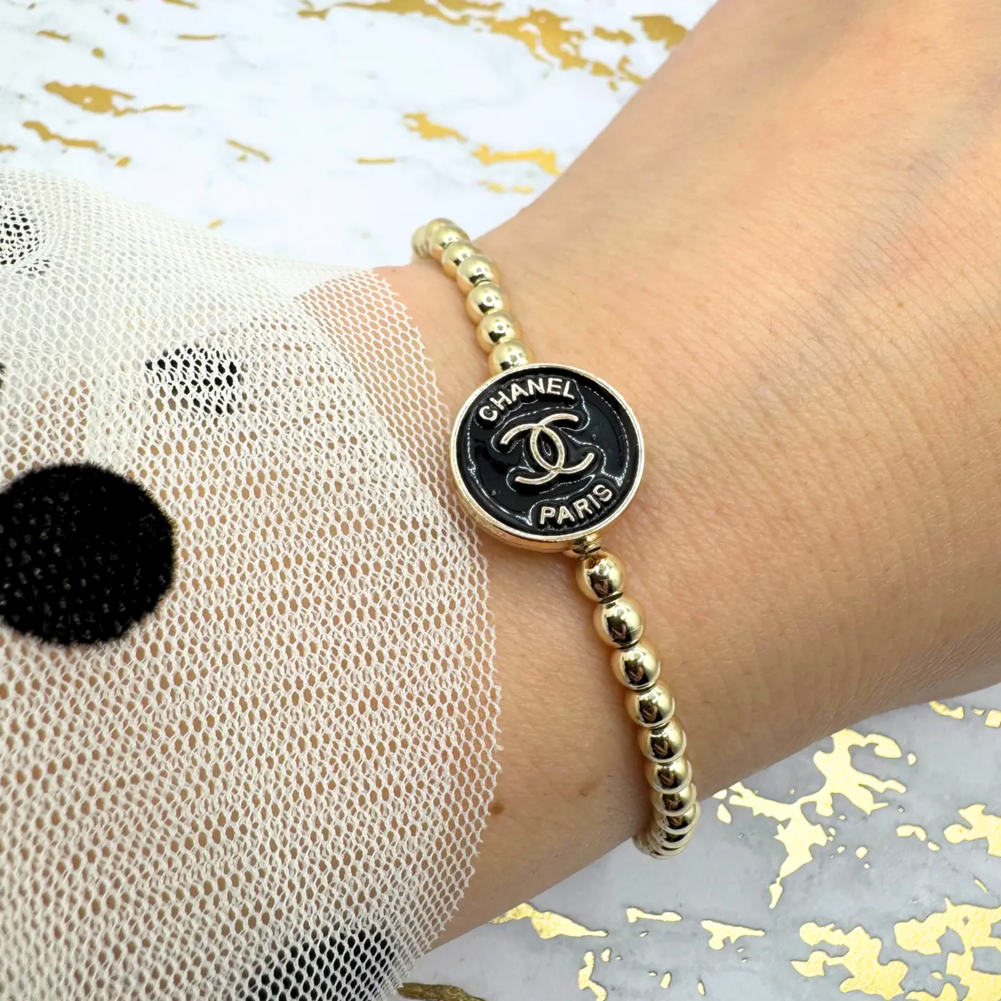 14K GOLD FILLED 4mm REPURPOSED BEADED BRACELET